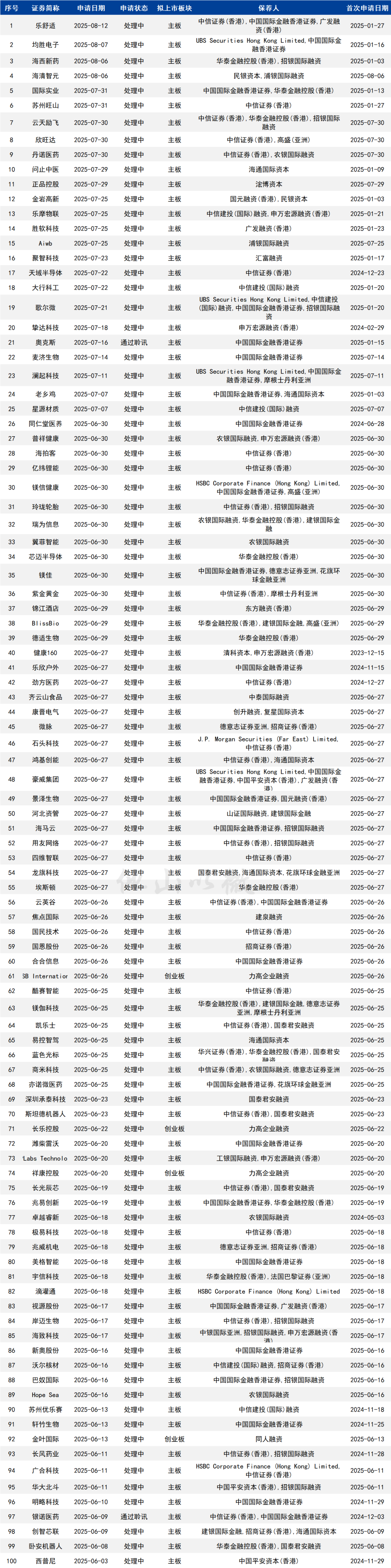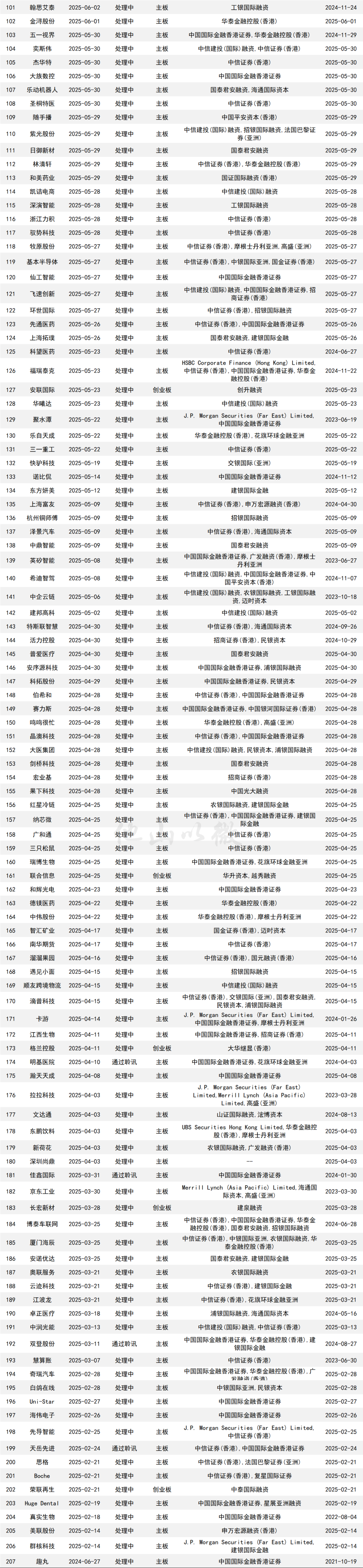 据ifind数据统计,截至8月12日,港股IPO排队企业家数有207家,以下是具体名单: