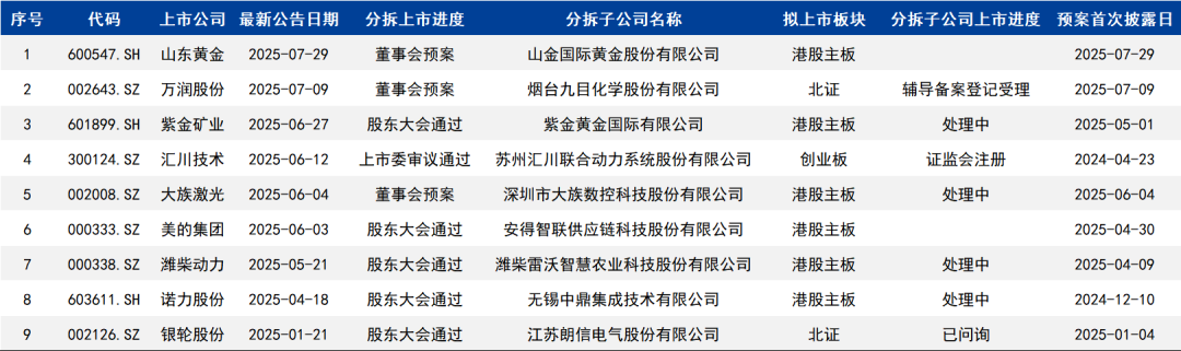 值得注意的是,卧龙电驱分拆浙江龙能电力科技股份有限公司赴北交所上市,目前已于2025年1月6日终止筹划北交所上市。广电电气分拆上海安奕极企业发展股份有限公司赴北交所上市,目前已于2025年7月15日终止北交所辅导。