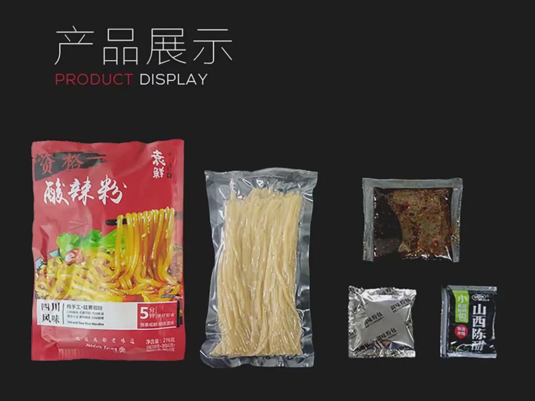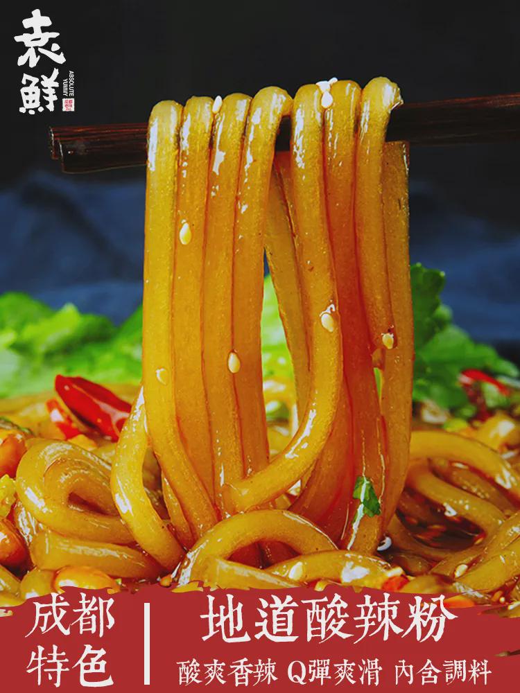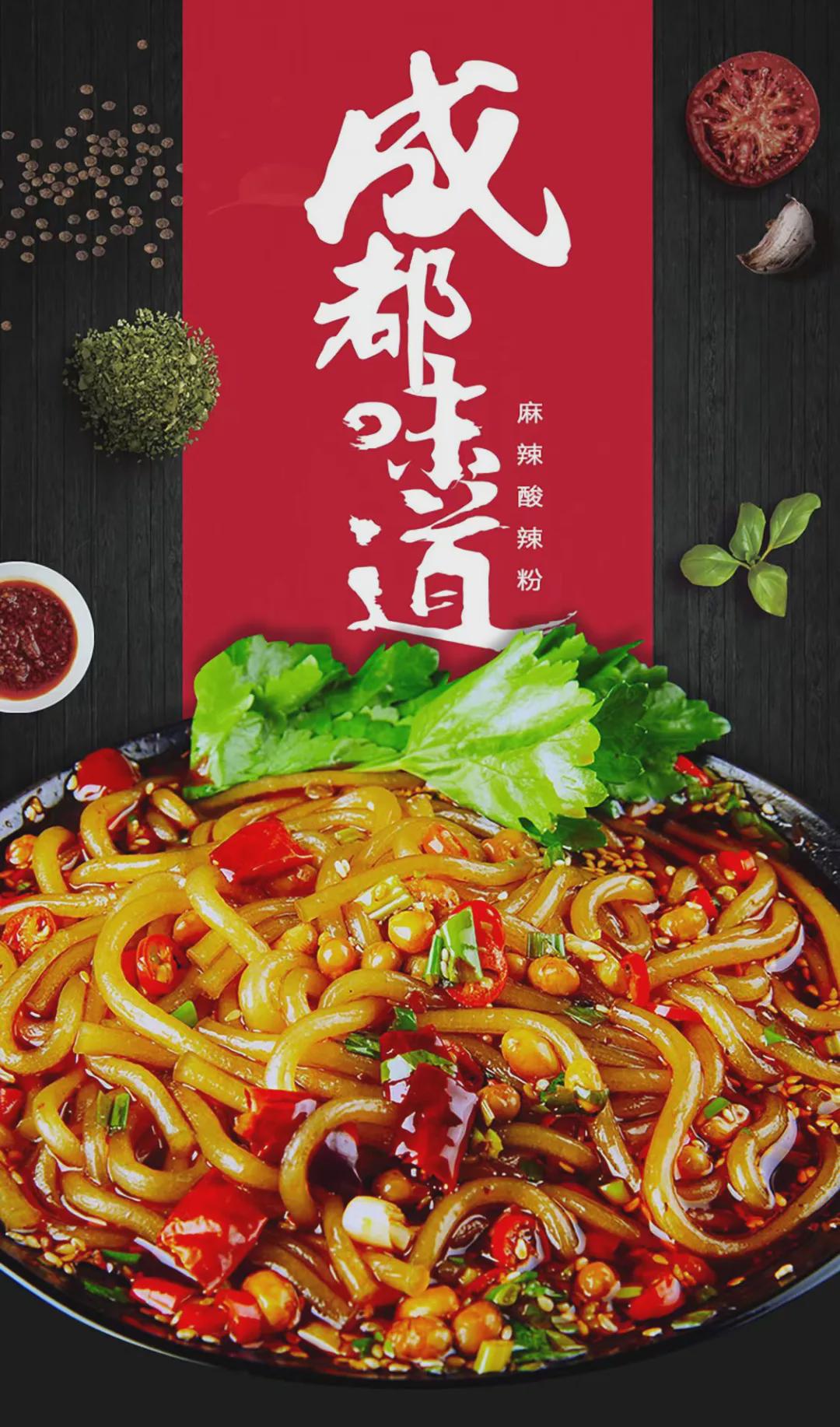 而咱们这款酸辣粉,粉条泡好后晶莹剔透,根根分明,加上辣椒油、香酥花生、素菜包和醋包,翻飞拌匀夹起来,看着粉条在筷子间晃动,溅起点点红油,色香味俱全。
