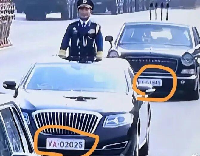 领导检阅的时候,两个领导三台车,后面一台是空的。