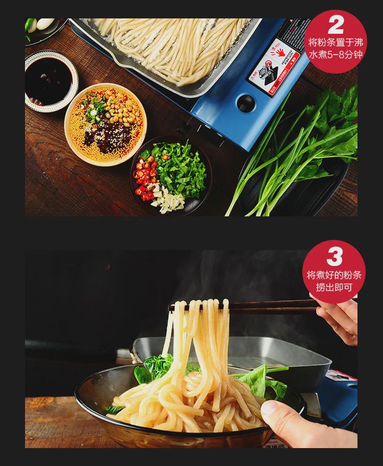 高山优质红薯和马铃薯打磨成粉,这样的红薯和马铃薯做出的粉条,甜度高、韧性足、杂质少、粉体通透,久泡软糯但是不烂,好吃营养高。粉条粉质更细腻,爽滑Q弹筋道、色泽如水晶,不混汤,不断条,每一根上都可以吸满精华汤汁儿。