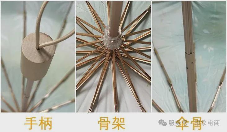 (1)复古原木手柄,高韧性玻纤伞骨,16骨航空级骨架,能扛8级台风;伞骨一看就比普通伞更坚硬,虽然骨架粗,但跟一部手机差不多的重量。