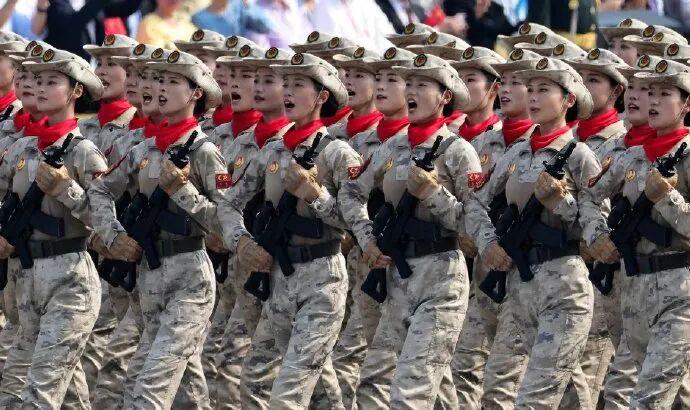 女民兵方队穿上了裤装,而不是以前不方便运动的裙装。有的女兵还被直接编入男队里,这时候她也是一个战士,而不是男兵的花边、点缀。