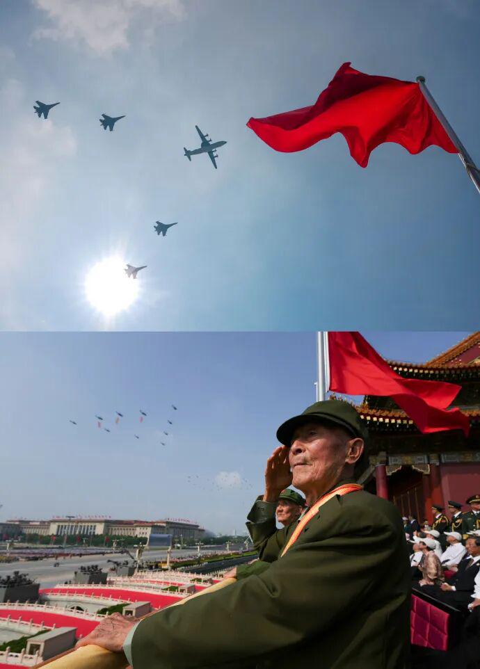 第七、方阵经过城楼,抗战老兵们颤巍巍地站起来敬礼,我眼眶也湿润了。