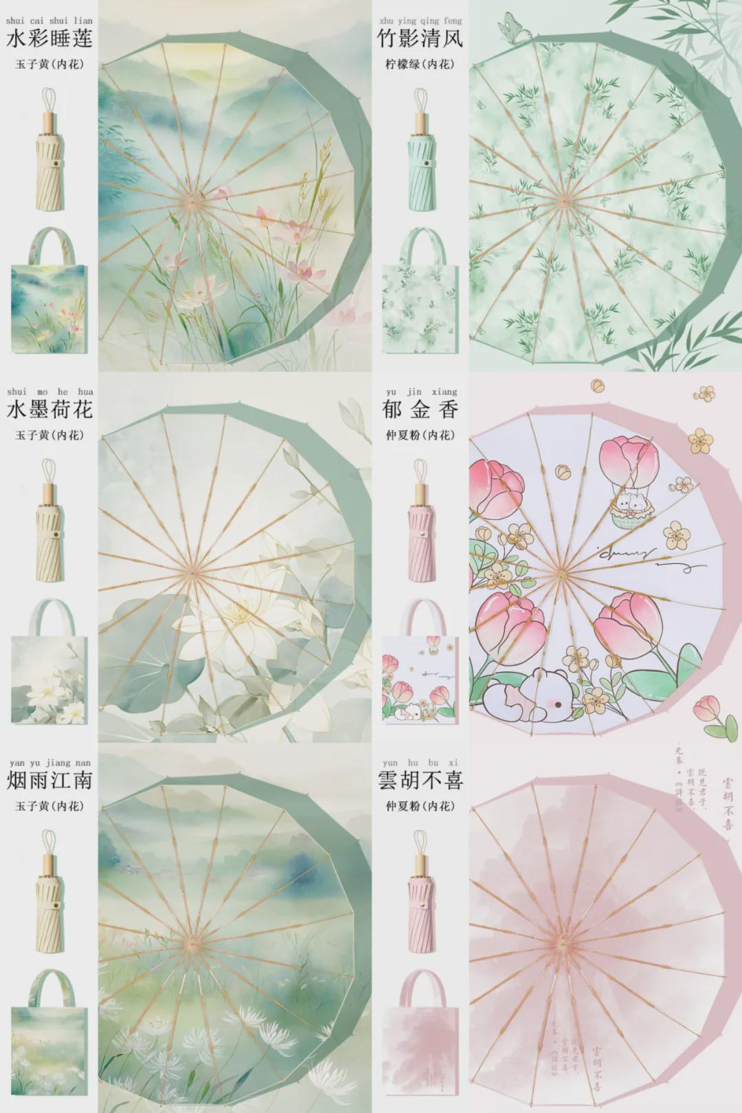 比如,今天我要推的这款,我个人收到后真的被它惊艳到。好看的伞面是对着自己的,而且很有古伞的风格,每一款都很好看。亮点更是比较多: