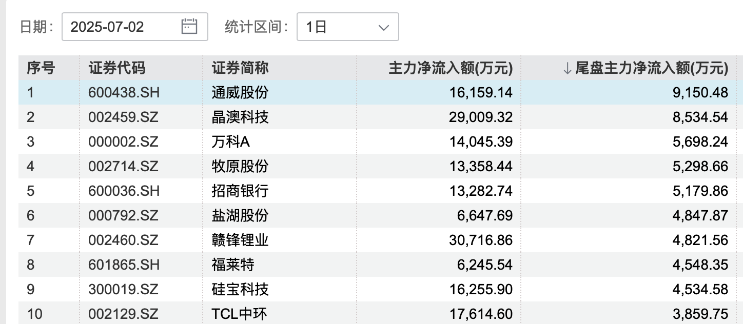 0 07-02 16:26主力今日尾盘买卖这些个股