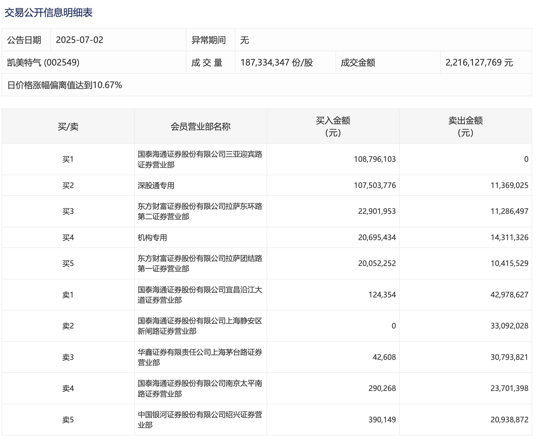 0 07-16 16:39凯美特气走出3连板,1家机构专用席位净买入638.41万元