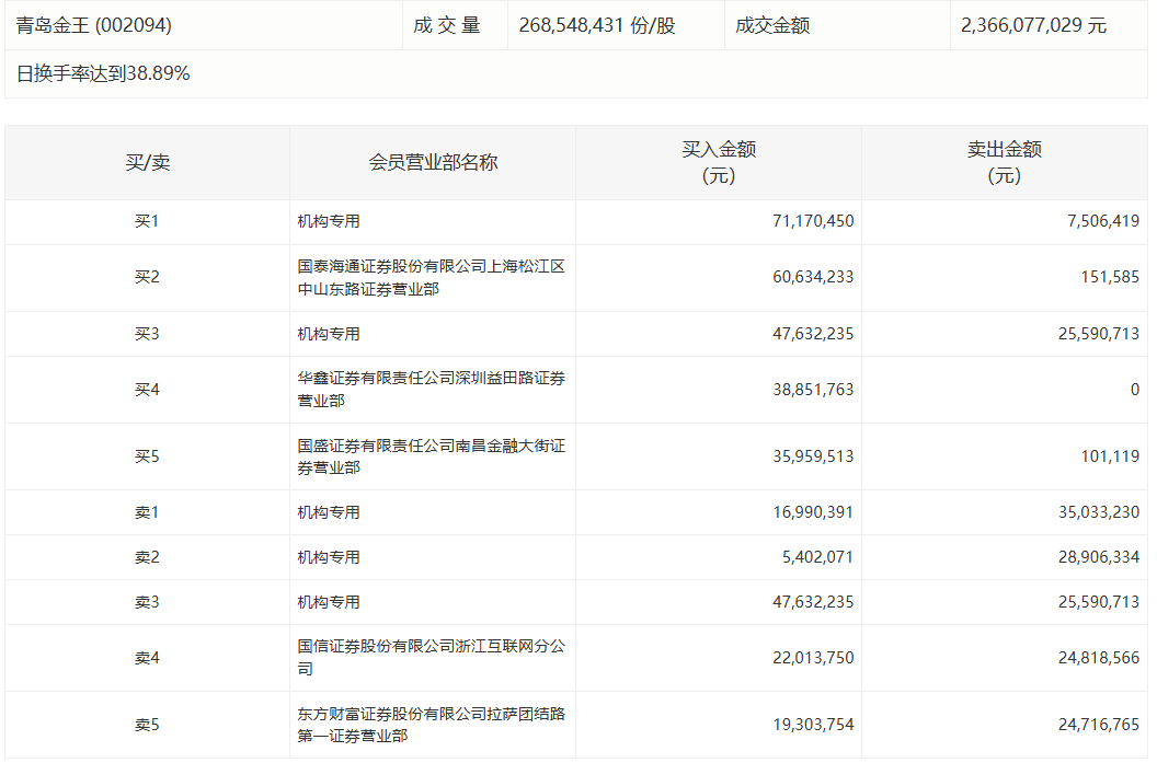 0 06-17 17:27青岛金王今日涨6.60% 机构专用席位净买入8570.56万元