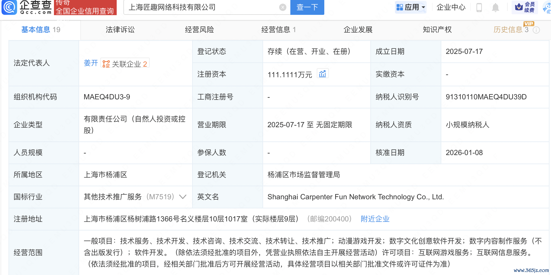 近日,上海匠趣网络科技有限公司发生工商变更,新增B站关联公司上海幻电信息科技有限公司为股东,同时注册资本增至111.11万元。企查查信息显示,该公司成立于2025年7月,法定代表人为姜开,经营范围包含:动漫游戏开发;数字文化创意软件开发;数字内容制作服务(不含出版发行)等。